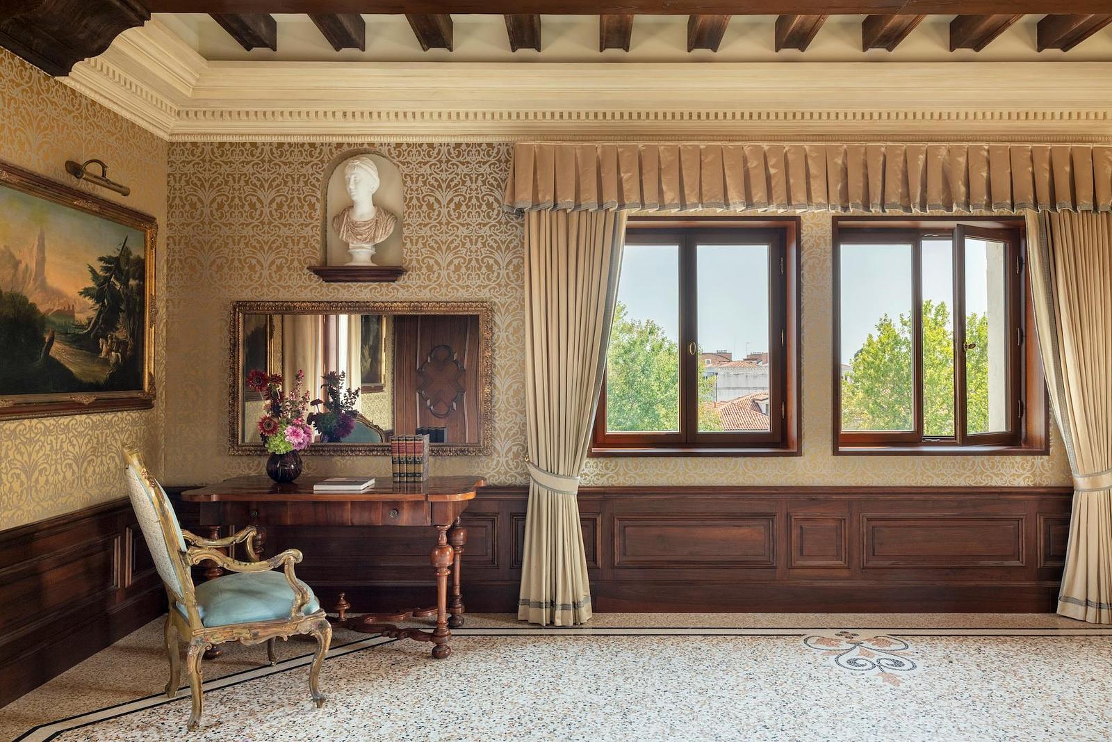 On a quieter stretch of the Grand Canal in Cannaregio stands Airelles Venezia, set inside the remarkable Palazzo Donà Giovannelli. The palace tells much of Venice’s story in stone. Its elegant Gothic façade dates to the fifteenth century and is attributed to Filippo Calendario, the same architect linked to the Doge’s Palace. A century later the powerful Giovannelli family transformed the interiors with grand Baroque rooms designed by Baldassare Longhena. Today the restoration keeps that theatrical sense of scale. Guests pass through marble staircases, frescoed salons and tall windows opening onto the canal where gondolas still glide past at an unhurried pace. History lingers in curious ways. Napoleon is said to have stayed here when Venice fell under French rule in 1807, long before the building became a hotel. The atmosphere feels deliberately Venetian rather than decorative pastiche. Murano glass, terrazzo floors and carefully restored ceilings frame rooms that look out over rooftops and water traffic. Dining focuses on refined Italian classics built around lagoon seafood and seasonal produce. It is the rare Venetian address where architecture does most of the talking, and where staying the night feels like quietly inhabiting a piece of the Republic’s past.