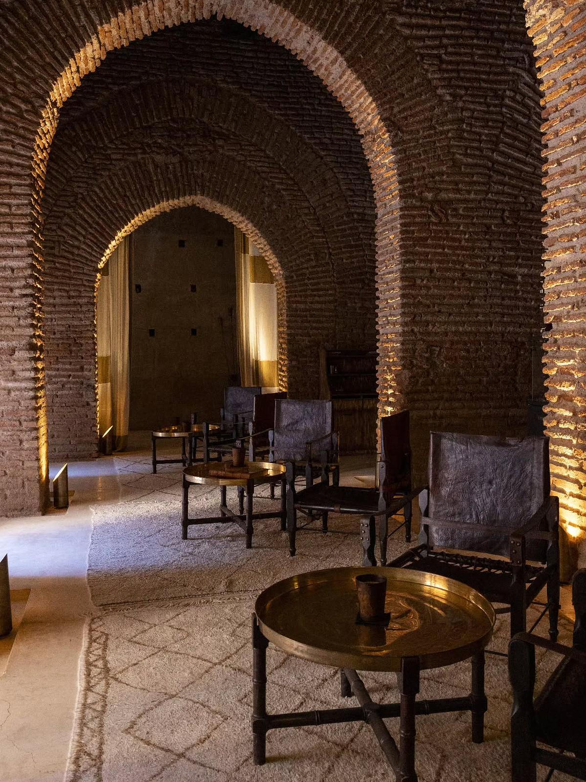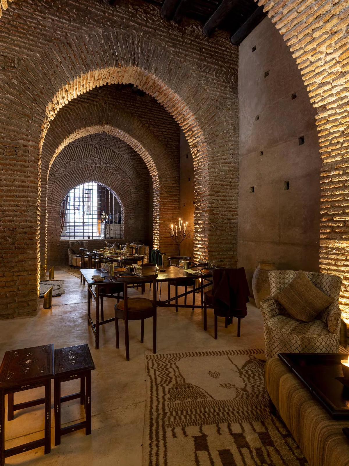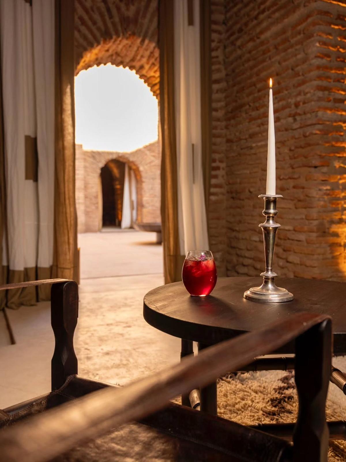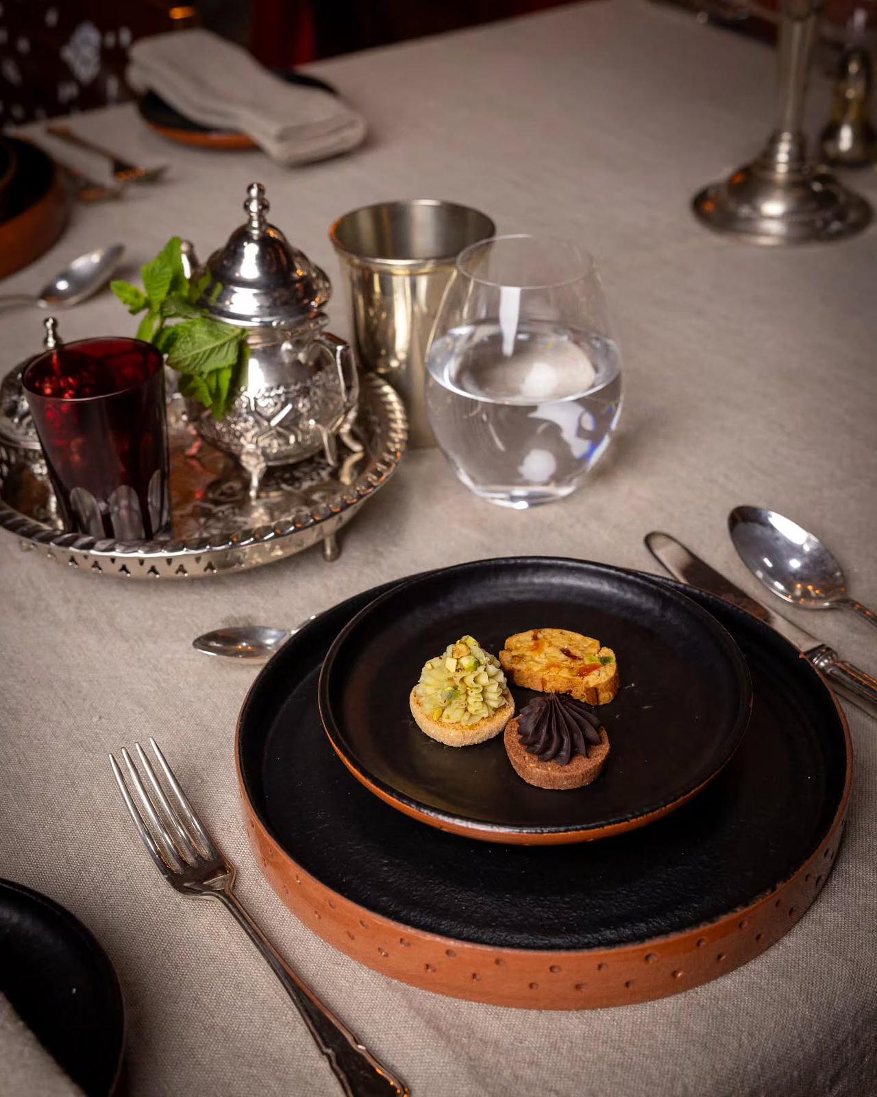 El Misbah is one of those Medina addresses where the atmosphere starts before you sit down. A heavy door, a brief transition corridor, then a series of hushed rooms that feel protected from the street’s noise and glare. The ceilings sit high and quietly imposing, and the light is rationed on purpose: lanterns and candles throw warm pools onto plasterwork and tile, leaving the rest in soft shadow. Your eyes adjust, your voice drops, and the evening instantly feels more intimate. There is a story the house itself likes to tell about its past: that this building once served as a prison, often described as a women’s prison. It is hard not to believe it, because the architecture does half the convincing. Thick walls hold the cool, openings are scarce, and the route through the spaces feels deliberate, almost choreographed. That controlled absence of daylight becomes the restaurant’s best design move. It sharpens every detail, the glint of glassware, the arrival of a tray, the perfume of spice, and it gives the whole dinner a sense of ceremony without needing to perform.