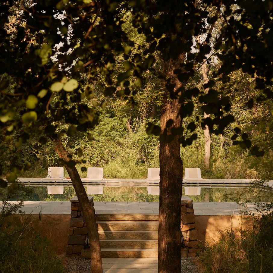 Set on the edge of Ranthambore National Park, Aman-i-Khas channels the romance of Mughal hunting camps with remarkable discipline. Ten standalone tents, each nearly 100 square metres, are arranged with geometric precision around a central axis, echoing imperial encampments once used by travelling courts. White canvas, soaring canopies and dark teak furniture create a restrained, almost monastic atmosphere, where silence carries as much weight as design. Days begin early with tiger safaris, guided by trackers who read the forest like a ledger. Returning at noon, guests find a different rhythm: slow lunches, Ayurvedic treatments, and the quiet theatre of shade shifting across canvas walls. The cuisine leans into North Indian classics, executed with clarity rather than excess. Expect refinement, not experimentation. There is little spectacle here, and that is precisely the point. Aman-i-Khas demands patience. In return, it offers a rare sense of distance from the world, shaped by architecture that understands restraint.
