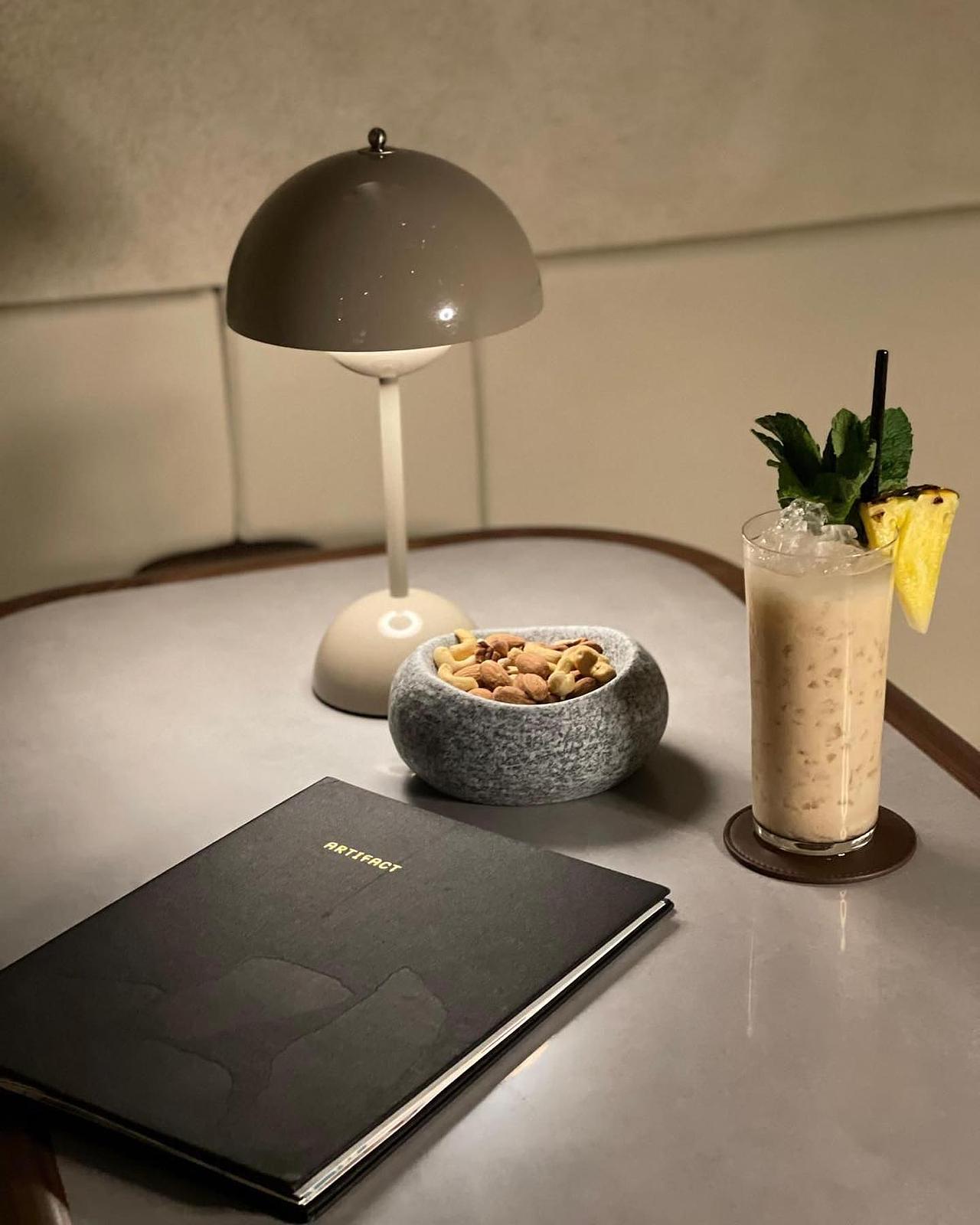 Hidden within the polished corridors of BaseHall 02, Artifact Bar Hong Kong feels almost engineered to slow you down. The project comes from the team behind Mosu Hong Kong, with chef Sung Anh applying his precise, almost scientific approach to flavor in a setting that is as considered as the drinks themselves. The space earned a Dezeen Award 2024 for Architectural Lighting Design of the Year, credited to Light Origin Studio and NC Design & Architecture. That detail matters the moment you step inside. Light is not decoration here, it is structure. It guides your eye across raw stone surfaces and brushed metal, shaping a room that feels calm yet sharply intentional. The cocktails follow the same logic. Expect compositions built around a single idea, executed with restraint and clarity. A drink might hinge on one ingredient explored through temperature, texture, and subtle acidity, each layer placed with quiet confidence. Nothing feels excessive, yet everything feels deliberate. Small plates echo the bar’s philosophy. Compact, technical, and quietly expressive, they reward attention without demanding it. Artifact attracts a certain kind of curiosity. The kind that enjoys asking what exactly is happening in the glass, and then taking a second sip to be sure.