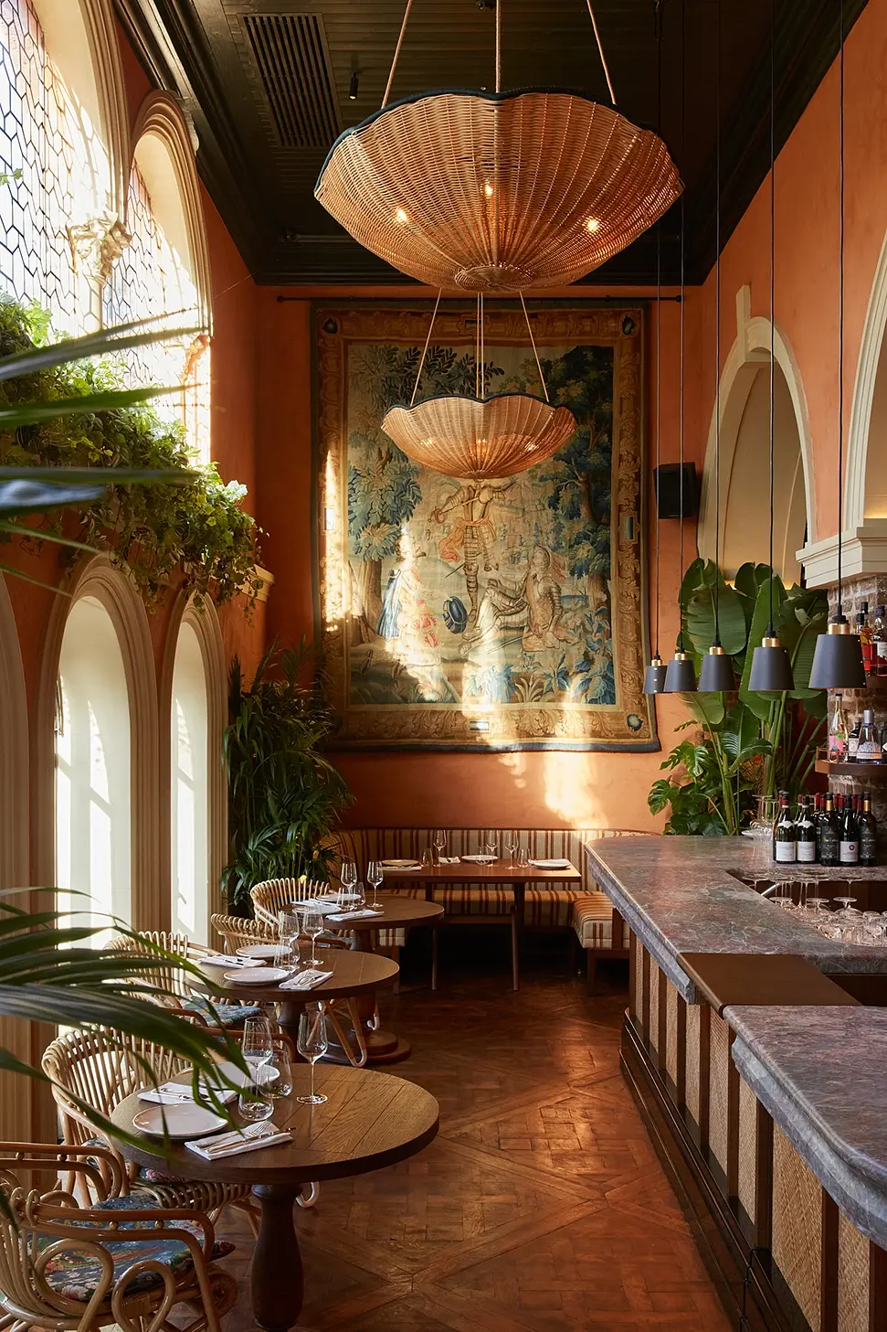 Belvedere has one of London’s rarest dining settings: deep inside Holland Park, in a grand building that began life in the 1630s as the stables and coach house of Holland House, before becoming a ballroom and orangery. That layered history still shapes the room. After its 2022 restoration, the interiors reveal original brickwork, soaring arches, fireplaces, palms and fig trees, with a terrace looking onto the park’s formal gardens. In the kitchen, Sardinian chef Lello Favuzzi brings real conviction to Italian cooking, with an eye for seasonality and excellent produce from across Italy. The food is precise rather than showy: handmade ravioli, raw seafood, wild sea bass, burrata, and thin crust pizzas from the wood fired oven. Belvedere gets the difficult balance right: grandeur, craft, and food with genuine appetite appeal.