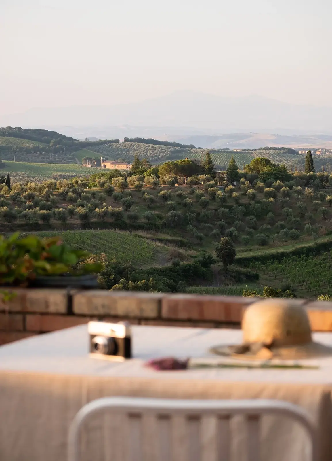 Set just outside Monteriggioni, Colle ai Lecci unfolds across a quiet rise of olive trees and vines, with the medieval walls of the village still visible in the distance. The buildings are former rural structures, carefully restored with a light hand. Terracotta floors, exposed beams and pale plaster walls keep the architecture grounded, while large openings pull the landscape inside. You notice quickly that nothing tries too hard here. Proportions feel right, materials age honestly, and silence becomes part of the design. The atmosphere leans toward a private estate rather than a hotel. With only a handful of rooms and apartments, mornings begin slowly, often with local cheeses, fruit and olive oil produced on site. The kitchen follows the same logic: seasonal Tuscan cooking, straightforward and confident, best enjoyed outdoors when the light softens over the hills. Expect calm rather than spectacle. There is no grand lobby, no theatrical arrival, and that is precisely the point.