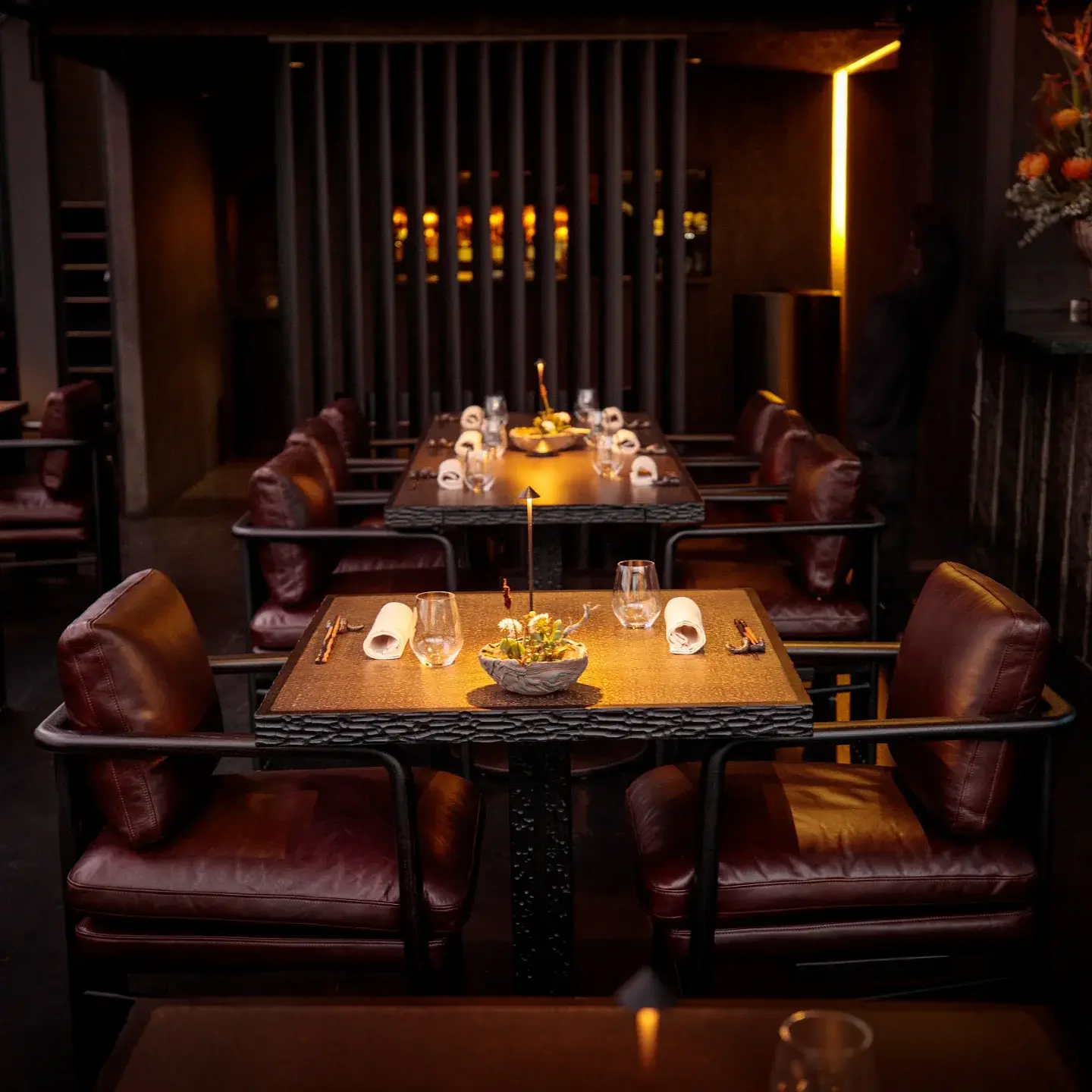 FYN sits high above Cape Town’s city centre on the fifth floor of Speakers Corner, a short walk from historic Church Square.  The lift doors open to a room that feels like a design gallery with appetite: an open kitchen, dark tones and warm brass, and a ceiling installation that reads like oversized abacus beads suspended in a glowing cloud. Come in daylight and the city performs too, with wide windows framing Church Square and a glimpse of Table Mountain.  Chef founder Peter Tempelhoff leads the kitchen with culinary director Ashley Moss and service and beverage director Jennifer Hugé, and the house style is precision without stiffness.  Expect a kaiseki inspired tasting menu where Japanese technique sharpens South African ingredients: seafood gets the clean lines of dashi and tempura, indigenous botanicals and fynbos notes turn up in surprising places, and the whole thing moves with the rhythm of a well edited story rather than a parade of tricks.