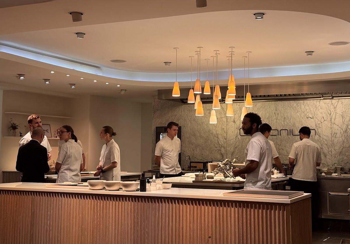 Geranium has one of the most unusual addresses in fine dining: the eighth floor of Copenhagen’s Parken stadium. From the dining room, guests look out across Fælledparken and the city’s copper roofs, while inside the mood is calm, light and exacting, with an open kitchen and a wine cellar fully on show. Chef Rasmus Kofoed, who opened Geranium in 2007 and moved it here in 2010 with Søren Ledet, built a restaurant that feels almost architectural in its precision.  What arrives on the plate follows the same logic. Geranium serves a long creative tasting menu centred on seafood from non endangered species, biodynamic vegetables, berries and foraged plants, with meat entirely absent. That choice gives the meal a distinctive clarity and keeps the cooking focused on texture, purity and detail rather than theatrics. It is the sort of place where a view, a plate and a thought seem to have been edited with the same discipline.