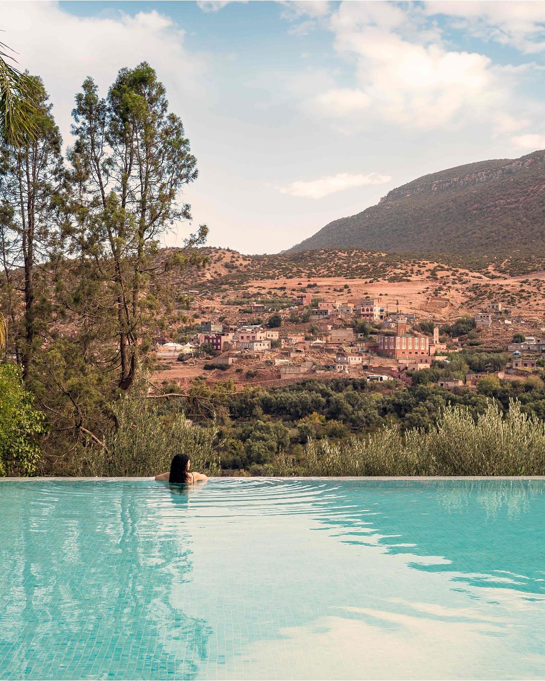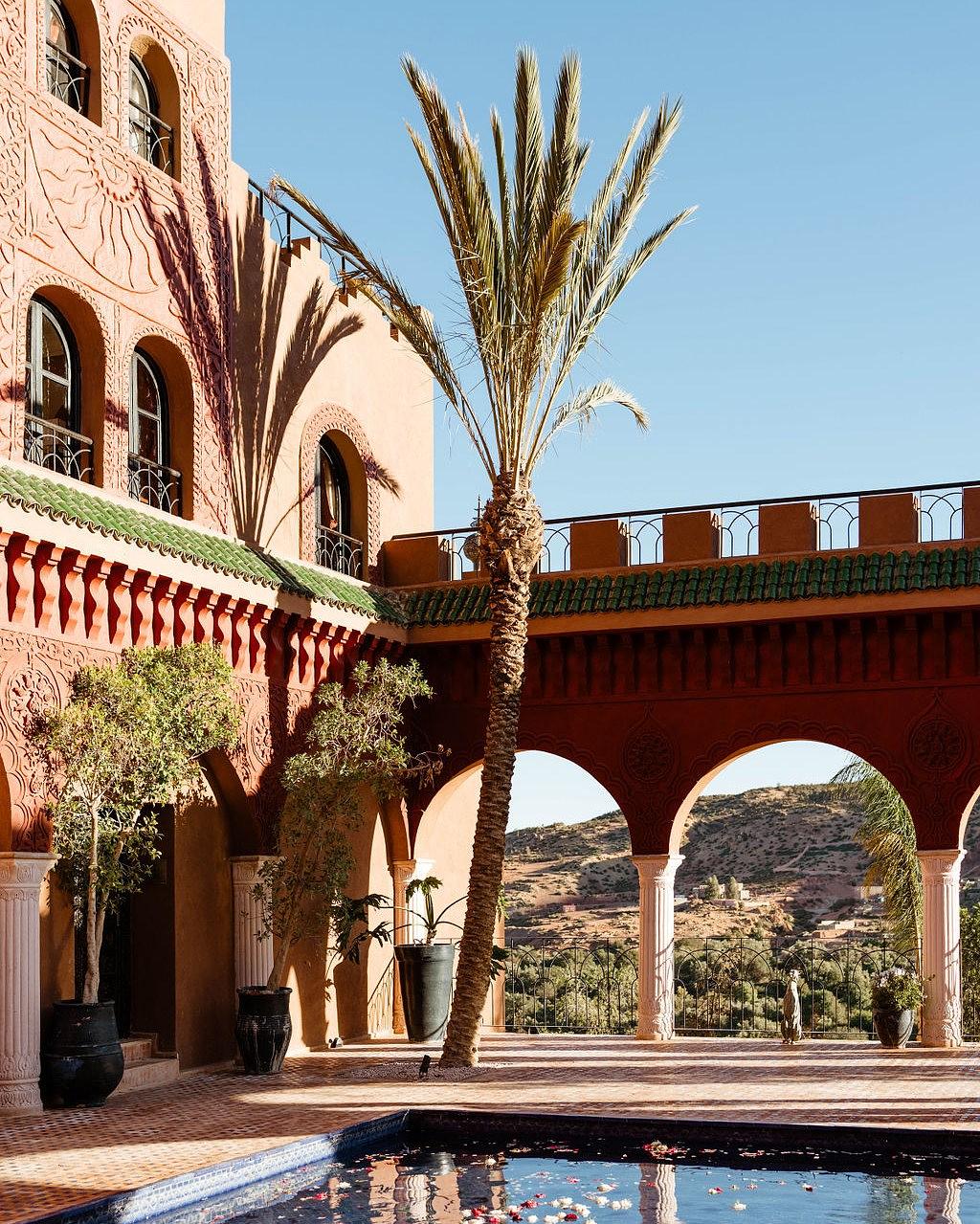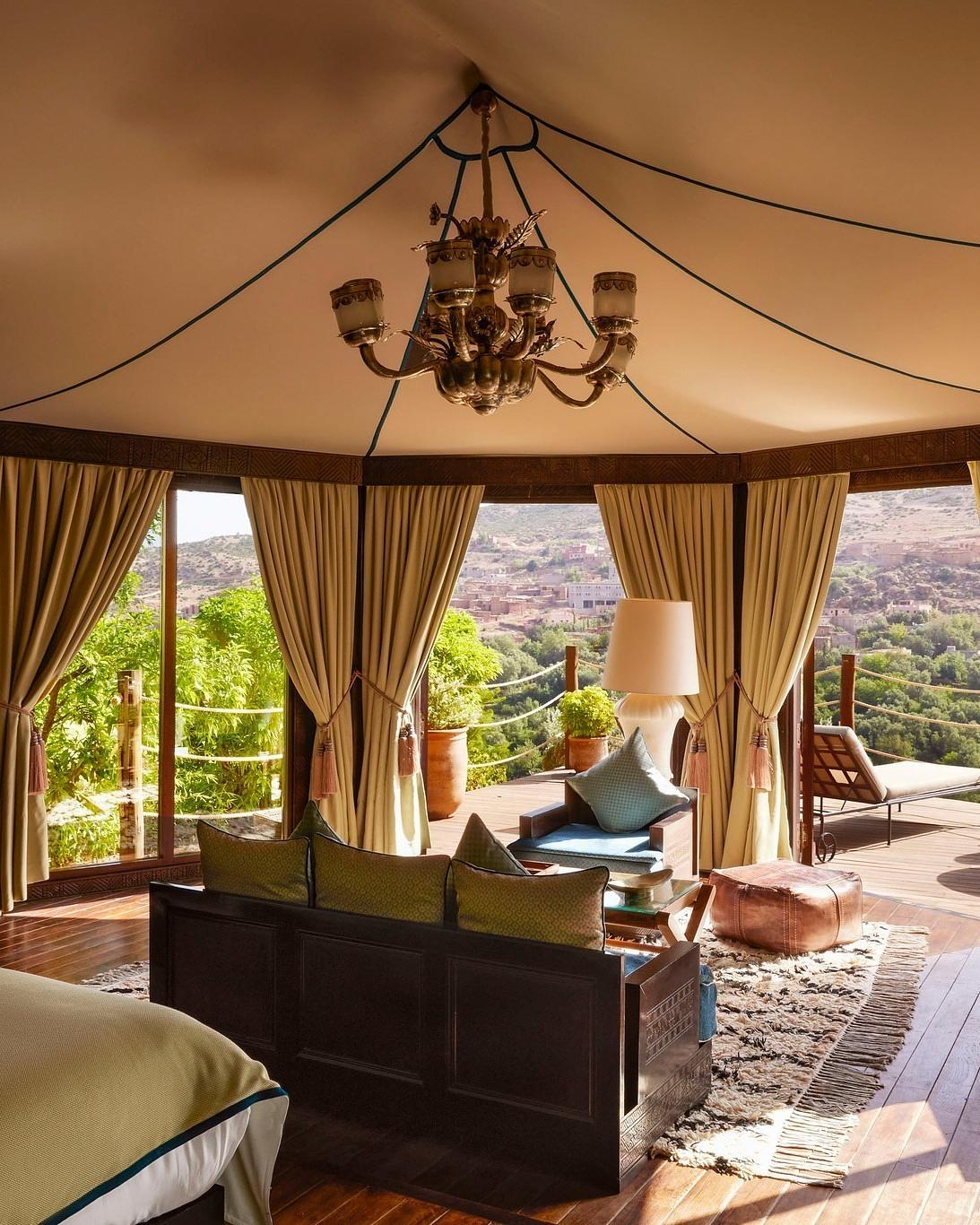 Forty five minutes from Marrakech, where the plains begin to wrinkle into the Atlas Mountains, Kasbah Tamadot waits behind a winding approach road that understands the value of suspense. The estate was once the private home of Italian antiques dealer Luciano Tempo, whose eye for treasures still lingers in carved doors, painted ceilings, lantern lit salons and rooms layered with objects that feel collected rather than ordered from a catalogue. Later acquired by Sir Richard Branson, it became one of Morocco’s most seductive retreats. The great trick here is choice. Stay in the main kasbah for courtyards, decorative drama and the feeling of inhabiting a grand mountain house. Or book one of the Berber tent suites, where canvas comes with a terrace, wide valley views and a hot tub that may ruin future hotel standards. Few places offer heritage romance and playful escapism with equal confidence. Days drift easily: mint tea under olive trees, a hammam session, lazy lengths in the pool, perhaps a mountain walk if ambition survives breakfast. Food is polished Moroccan comfort rather than laboratory gastronomy, and service has that rare quality of being attentive without choreography. “Tamadot” is said to mean soft breeze in Berber. It suits the place. Expect atmosphere, warmth and scenery with real presence. Do not expect urban buzz or minimalist restraint. This is Morocco in a silk jacket, and it wears it very well.