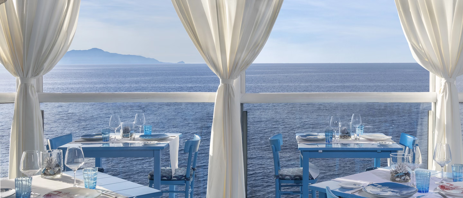Il Riccio has the rare advantage of being exactly where you want a Capri lunch to happen: on the cliff edge at Anacapri, a few steps from the Blue Grotto, with the sea doing half the seduction for free. The kitchen is built around Mediterranean seafood, and the point is not fireworks but precision: shellfish, raw fish, pasta and grilled catches handled with the confidence of a place that knows freshness is already a luxury. Jumeirah describes the cooking under Chef Salvatore Elefante as rooted in local tradition and bold Mediterranean flavour, within the wider Capri Palace culinary direction of Andrea Migliaccio.  What gives Il Riccio its identity is that the design never lets you forget where you are. The restaurant was redesigned by architect Marco De Luca in a blue and white palette with Mediterranean woods and mosaic tiles, a polished version of island craft rather than generic glamour. It also carries history: the restaurant took over the site of Add’o Riccio, a long loved Capri address. So yes, people come for the view, but they remember it because the place understands texture, salt, restraint and detail all at once.