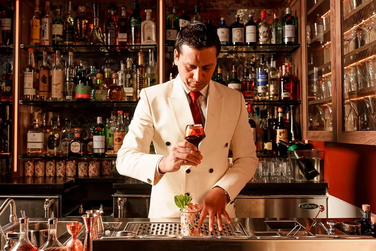 Room 207 is the East Village’s new little secret with a very literal address: 207 Second Avenue, with a discreet entrance by 13th Street.  Inside, Wid Chapman leans into Prohibition mood without turning it into costume drama: low light, wood paneling, velvet drapes, antique mirrors, and leather chairs, all scaled to an intimate 26 seats.  The drinks are the headline. Hemant Pathak, long associated with Junoon, runs a tight program of classics, forgotten cocktails, and playful revisions, often pulling local New York honey into the mix for a city specific twist.  Food comes as proper late night fuel rather than polite garnish, overseen by chef Akshay Bhardwaj: think crisp chicken sliders, spice kissed lamb skewers, rarebit style cheese toast, and oysters that make a martini feel like a complete plan.