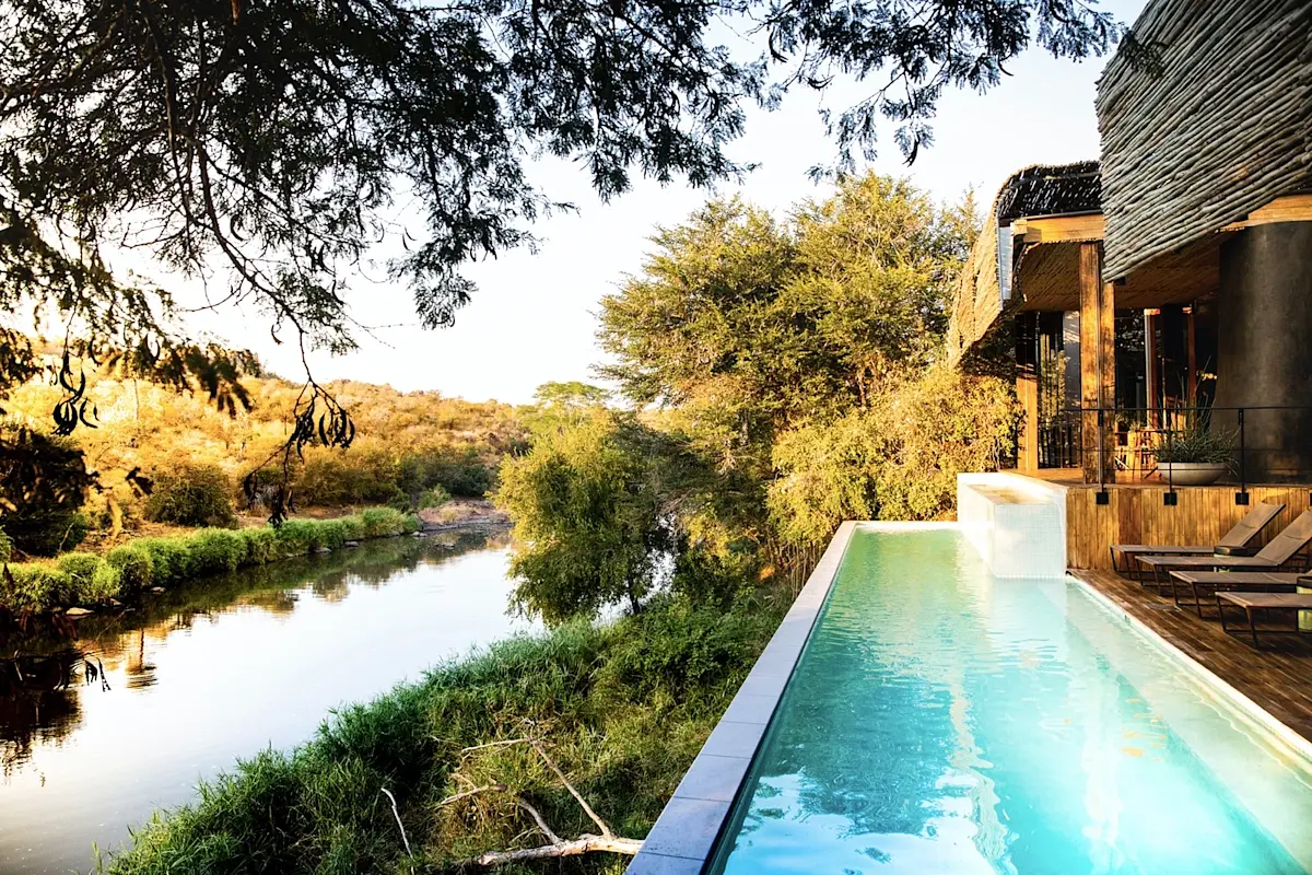 Set within the private concession of Kruger National Park, Singita Sweni Lodge feels improbably intimate for a reserve of such scale. Rebuilt in 2019, the lodge stretches lightly along the Sweni River, its timber decks and glass walls tuned to shade, breeze and the slow theater of passing elephants. The design is restrained and tactile, all canvas tones and crafted detail, allowing the bush to take the lead. Days unfold between game drives in Big Five country and long lunches above the riverbed. Evenings bring lantern light, distant roars and the distinct pleasure of knowing that wilderness still writes the schedule.