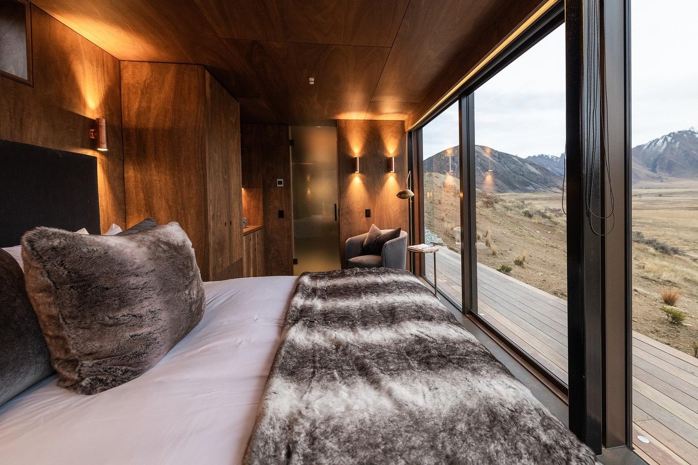 Some hotels offer a room with a view. The Lindis Lodge appears to have acquired an entire valley. Hidden deep in New Zealand’s Ahuriri Valley, around three hours from Queenstown, this striking retreat sits beneath the Southern Alps like a piece of land that learned architecture. Its sweeping roofline was designed to echo the surrounding mountain ridges, and from certain angles the building nearly vanishes into the tussock grass. Arrival matters here. The road grows emptier, the sky larger, and then this sculptural lodge emerges as if someone commissioned a James Bond villain with impeccable taste. Inside, the tone shifts to warmth: oak, stone, leather, wool, fireplaces, immense glass walls. Weather becomes entertainment. Morning mist drifts across the valley, afternoon light turns gold, and after dark the stars take over. With almost no light pollution, the Milky Way can look absurdly clear. There are only a handful of suites plus separate glass pods set further into the landscape. Sleeping there feels pleasantly close to camping, if camping involved excellent bedding, heating and someone preparing dinner. Cuisine focuses on New Zealand produce, with lamb, venison, seasonal ingredients and strong Central Otago wines. Service is polished, calm and intuitive. Be clear about the proposition. You do not stay here for city energy or spontaneous café hopping. You come to disappear for a few days, to watch clouds move like cinema, and to remember how rare silence has become. Some hotels impress in five minutes. Lindis tends to get stronger by the hour.