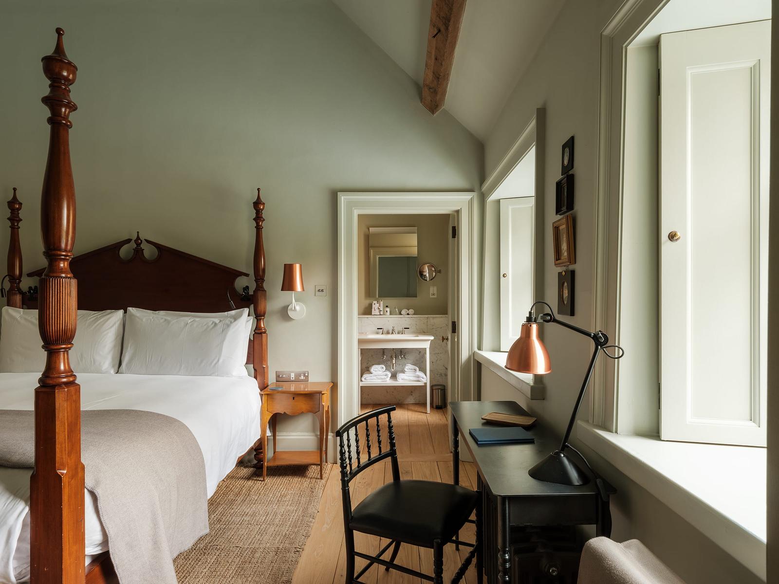 Hadspen House stands quietly in the Somerset countryside a few miles outside Bruton, its warm limestone façade a confident example of early Georgian country house architecture. The estate dates to the seventeenth century and passed through generations of the Hobhouse family, who shaped both the house and the gardens that now define the landscape. Today the property operates as The Newt in Somerset, a meticulous restoration led by South African owners Koos Bekker and Karen Roos. Their approach treats the estate as a living organism rather than a museum. Georgian proportions remain intact inside Hadspen House, where restrained paneling, tall sash windows, and carefully sourced antiques give the rooms a calm authority. Outside, the experience broadens across orchards, cider presses, and one of Britain’s most ambitious contemporary garden projects. The Parabola, a sweeping terraced garden planted with thousands of perennials, turns a simple hillside into a theatrical landscape. Farm buildings house bakeries, creameries, and a working cider cellar, reinforcing the sense that the estate feeds itself. Staying here feels like stepping into a country estate that never stopped evolving. Architecture, agriculture, and hospitality operate in quiet harmony, making The Newt feel both historic and entirely alive.