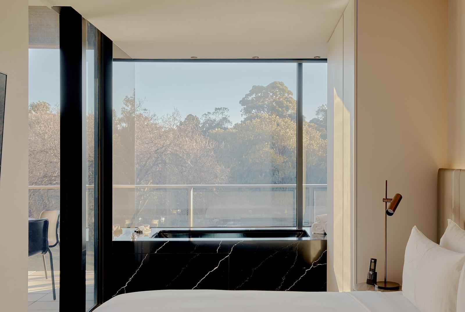 Across from the vast green theatre of the Royal Botanic Gardens Victoria, United Places Hotel Botanic Gardens keeps a surprisingly low profile. Many pass it without noticing. Those who do step inside quickly understand the appeal. The building was conceived in 2019 with a clear idea: remove everything that distracts from actually living in a place. There are only a handful of suites, each closer to a well resolved apartment than a hotel room. Full kitchens, proper dining tables, even laundry. You could arrive for a night and end up staying a week without adjusting your routine. The architecture is restrained and precise. Generous glass frames the gardens like a permanent backdrop, a view that cannot be built out thanks to the protected park opposite. It creates a rare sense of permanence in a fast growing city. Inside, materials are calm and tactile, designed to fade into the background rather than compete for attention. There is no bustling restaurant or bar. Instead, the hotel quietly taps into Melbourne’s food culture through partnerships, delivering meals from respected kitchens directly to your room. It suits the mood. This is a place where the city comes to you. Service follows the same logic. Efficient, almost invisible, and highly personal when needed. No grand gestures, no staged interactions. Expect space, privacy, and a strong connection to the rhythm of Melbourne life just outside your window. Do not expect history, spectacle, or architectural bravado. The strength lies in how convincingly it lets you settle in.