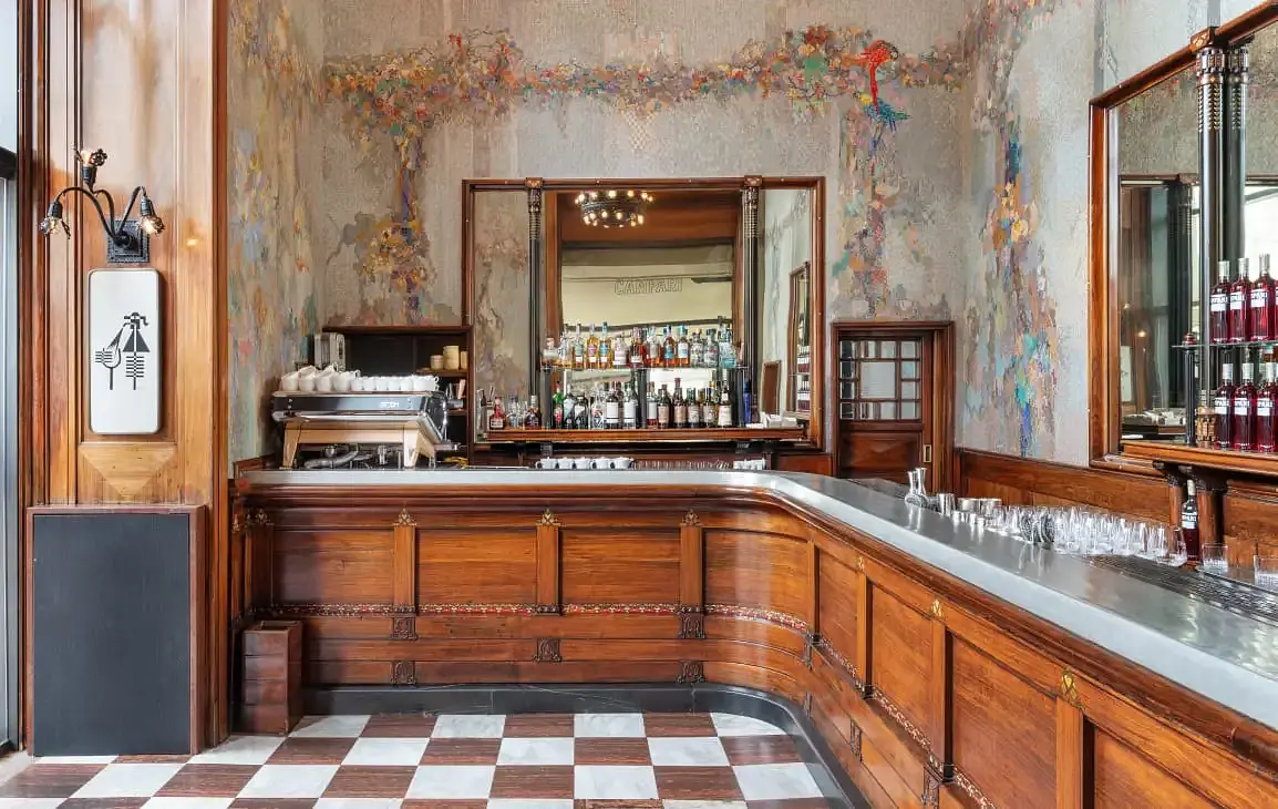 Camparino in Galleria has one of those Milan addresses that feels almost unfair to the competition: right at Piazza Duomo, inside Galleria Vittorio Emanuele II, with the cathedral and the city’s daily theatre drifting past the windows. Davide Campari opened it in 1915, and the place quickly became famous for a clever system that sent chilled seltz up from the cellar, giving Milan a sharper, colder Campari soda than anyone else. That signature still matters, and ordering the Campari Seltz at the Bar di Passo remains the move of someone who understands the assignment.  The interior is part time capsule, part impeccably dressed Milanese salon. The 2019 restoration by Lissoni respected the Liberty era bones, from the historic mosaics to the polished wood, ironwork and frescoed surfaces, while the upstairs Sala Spiritello gave the address a more contemporary stage. On the drinks side, head bartender Tommaso Cecca keeps the classics in excellent shape while pushing a few sharper signatures. On the food side, the relaunch notably brought in Davide Oldani’s Pan’cot concept, designed for cocktail pairing. In other words, this is not the place for a rushed espresso and existential confusion. It is where Milan goes to look like Milan.