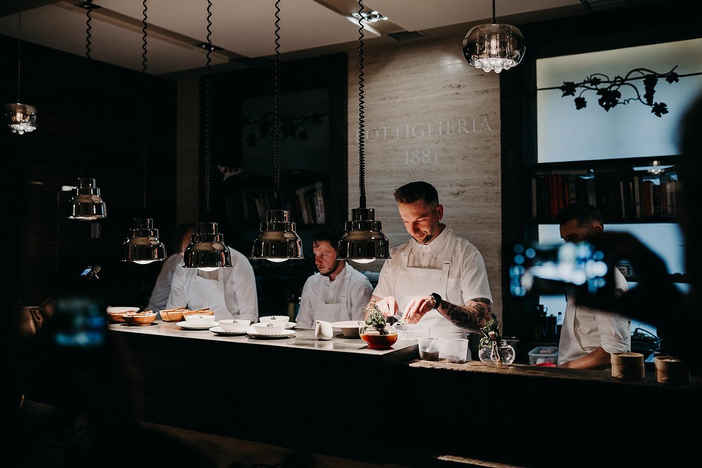 On a quiet street just steps from Kraków’s leafy Planty park, Bottiglieria 1881 feels deliberately discreet. Inside a restored nineteenth century townhouse, the dining room is intimate and softly lit, with dark wood, brick vaults and shelves lined with carefully chosen bottles that hint at the restaurant’s original identity as a wine bar. Chef Przemysław Klima has turned it into one of Poland’s most talked about culinary addresses and the first Michelin starred restaurant in the city. His tasting menus reinterpret Polish ingredients with precision and modern flair: aged duck with fermented beetroot, river fish balanced by sharp herbal notes, desserts that play on forest flavours. The experience unfolds at a thoughtful pace, guided by a sommelier team whose pairings are both confident and playful. Dining here feels like gaining access to a contemporary chapter of Kraków’s food story, written in a room that still carries the quiet elegance of its past.